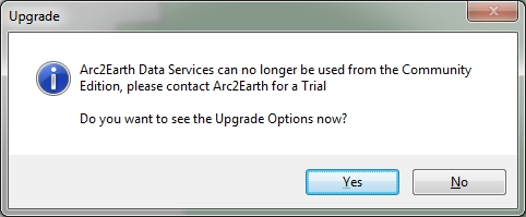 They have a polished website, so it gives you the impression their software will be the same. Their claim is worldwide coverage for Google Maps directly in ArcMap, with the convenience of a low-cost monthly subscription ($490/yr for 1 user). You can download a free Community Edition for a 7 day trial, so I gave it a go. Download and install was simple. When I opened ArcMap I got this: