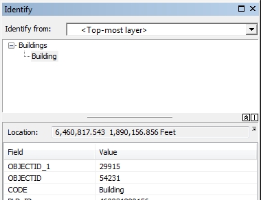 Here comes the Identify tool to the rescue! Identify tool you ask? Yes, besides displaying what features you clicked on it also displays the coordinates where you clicked. You have been using this tool for a long time but maybe overlooked the coordinate display. Try it now. Here is what I got: