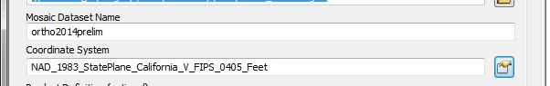 Now what? You have to put all the images together to make a seamless image. To do that I created a Mosaic Dataset. Using ArcCatalog I created a new file based geodatabase. Then in it created a new Mosaic Dataset. The Create Mosaic Dataset tool will ask for a name and coordinate system.