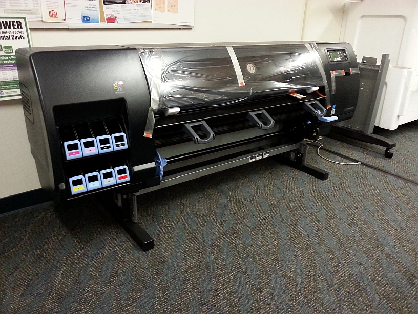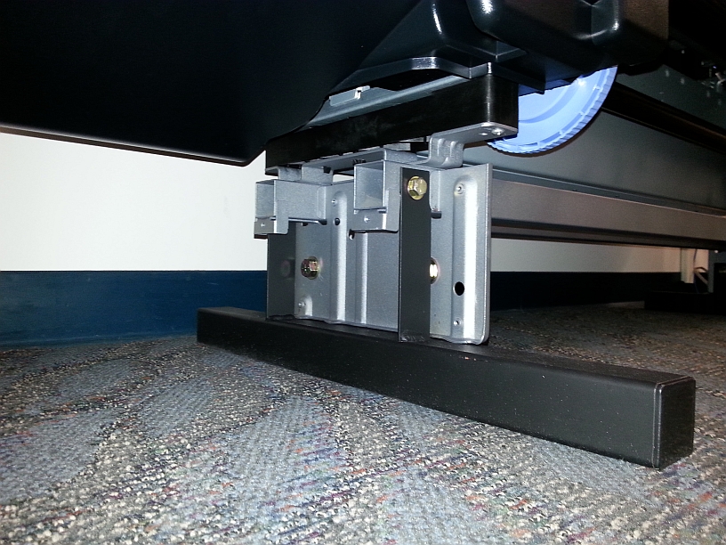 To make it fit in a reasonable size box, one of the guys in our IT Department made custom short legs for it. He is great with a welding torch! You can see the original legs to the right of the plotter in the photo below.