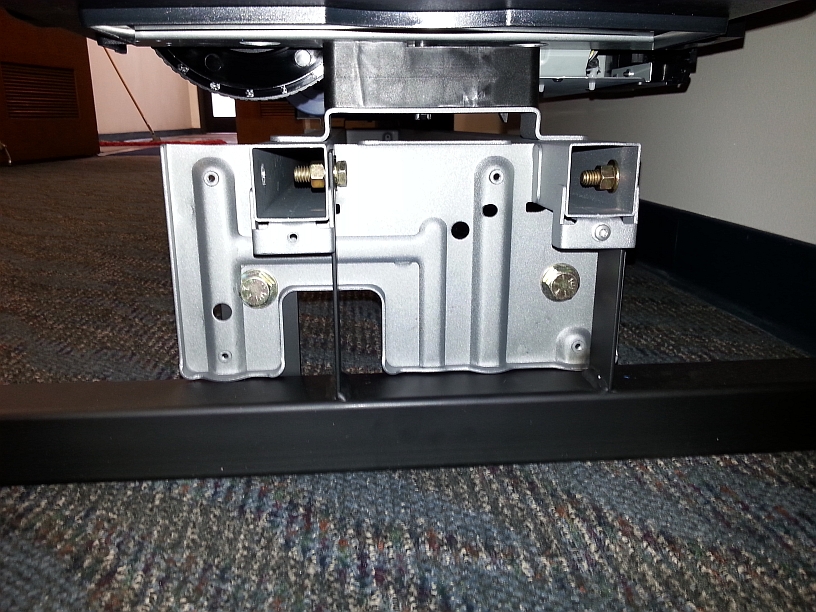 Foot braces (black) were created to bolt onto the plotter’s original hardware (silver).