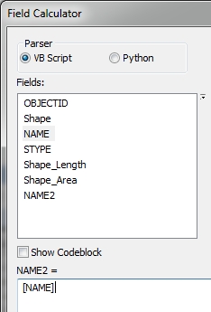 What I don’t like about this method is that I could not reuse the field “NAME” and had to create “NAME2”.  Also I liked the original order, and now my field is at the end of the table.  Sure, I could do it again by adding back the field name “NAME” and recalcing again, but my field is still at the end.  Yes you can reorder fields for display in ArcMap, but it does not do anything to the real order of the fields in the geodatabase … and that bugs me!  So on to the second option.