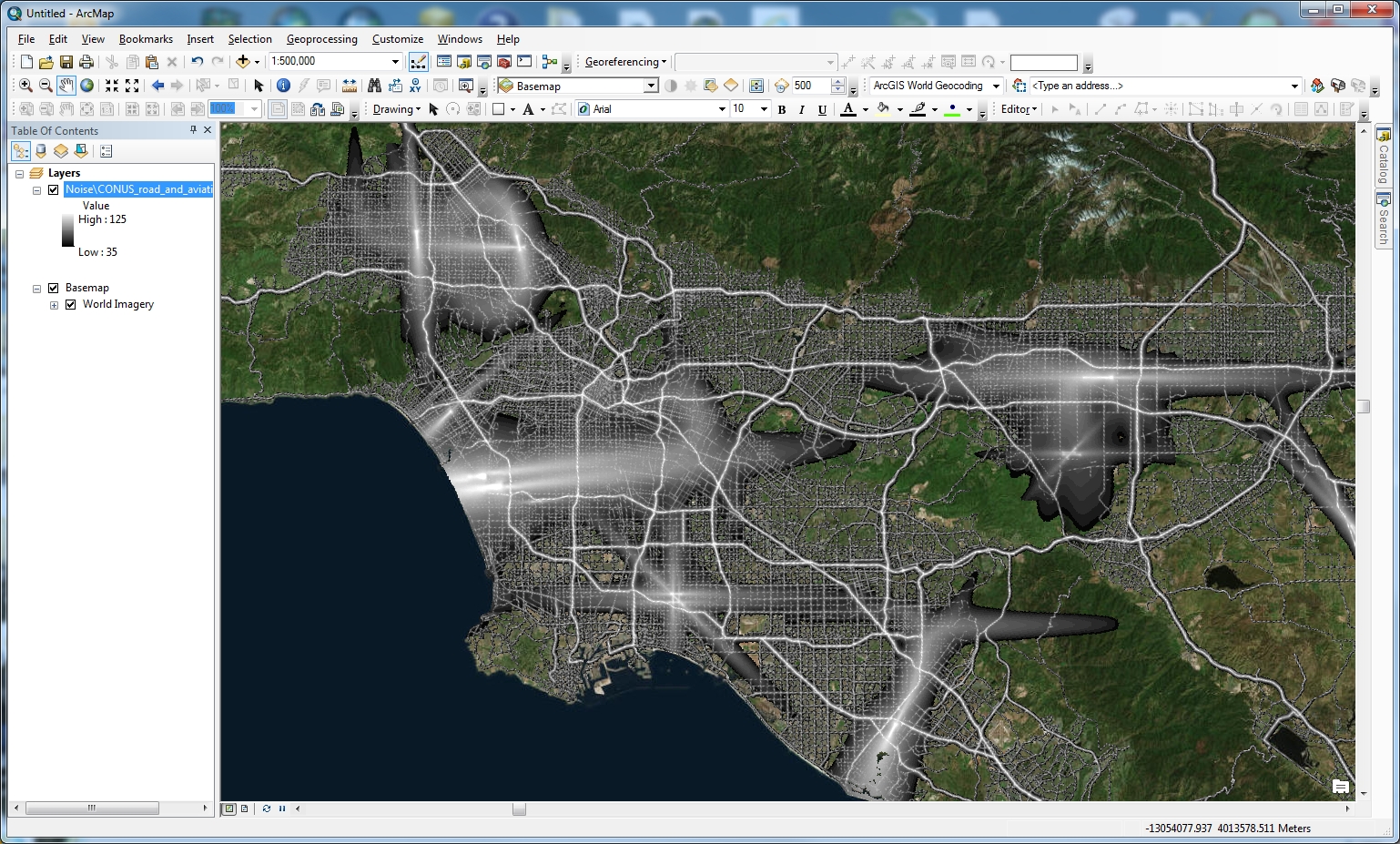 Adding the image service to ArcMap displayed this in the LA basin area: