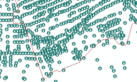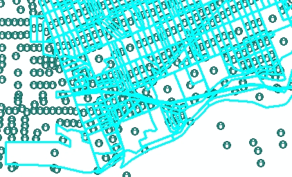All you see are the centroid points. However, if you do a spatial selection like using the city boundary to select the blocks that intersect, you see something like this: