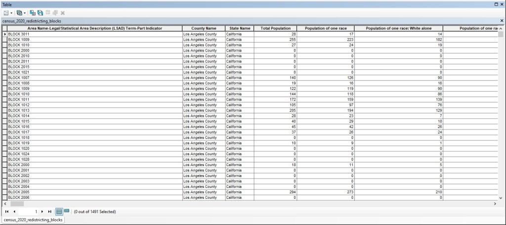 Now export the selected polygons to a geodatabase, and you now have your own census data. Note the attribute table has aliases for the fields: