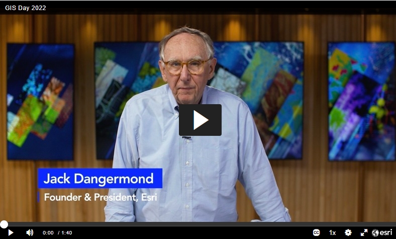 GIS Day 2022 Posted on November 15, 2022 by socalgovgis - Michael Carson GIS Day is almost upon us! Check out this video from Jack Dangermond. Share this: Click to share on X (Opens in new window) X Click to share on Facebook (Opens in new window) Facebook Click to share on Tumblr (Opens in new window) Tumblr Click to share on LinkedIn (Opens in new window) LinkedIn Click to email a link to a friend (Opens in new window) Email Click to print (Opens in new window) Print Like Loading... Related